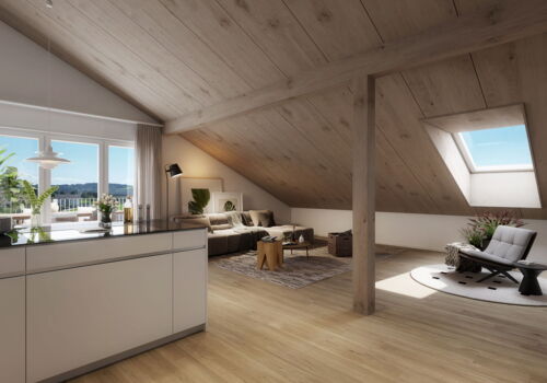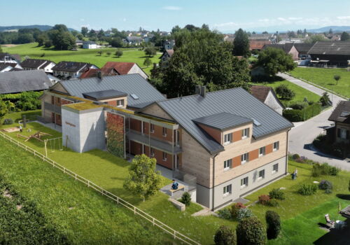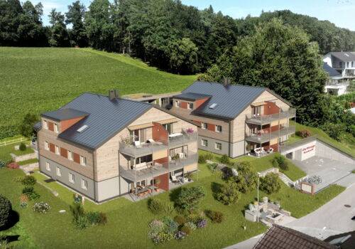 An sehr attraktiver und ruhiger Lage realisieren wir zwei stilvolle Wohnhäuser mit einer privaten Tiefgarage. Im Haus 1 werden Eigentumswohnungen und im Haus 2 Mietwohnungen realisiert. Die schlichte Architektur mit einladenden Terrassen und Gärten vermittelt ein einzigartiges Wohngefühl. Die Häuser werden in hochwertiger Holzbauweise erstellt. Moderne Technik mit Photovoltaikanlage für die eigene Stromerzeugung, die Energiegewinnung mittels Erdsonden, Kühlfunktion in der Bodenheizung und Wohnungslüftungen bieten Komfort. Eine ökologische Bauweise in Minergie-P und ein sparsamer Energieverbrauch sorgen für tiefe Nebenkosten. Die modernen Wohnungen mit 3 ½ oder 4 ½ Zimmern weisen einen hochwertigen Innenausbau auf, den Sie je nach Baufortschritt mitbestimmen können. Helle Wohn-/Essbereiche und Küchen mit edlen Geräten von Miele und Bora sowie einladende Bäder lassen Ihren Wohntraum wahr werden.