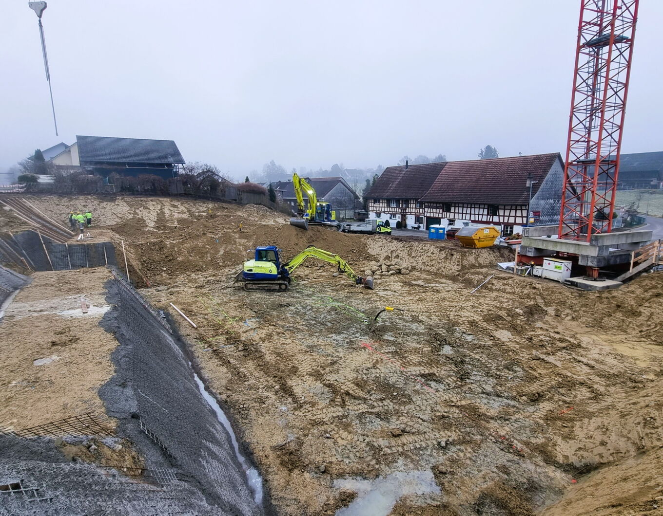 11.02.2026: Böschungssicherung und Baugrubenaushub in Arbeit